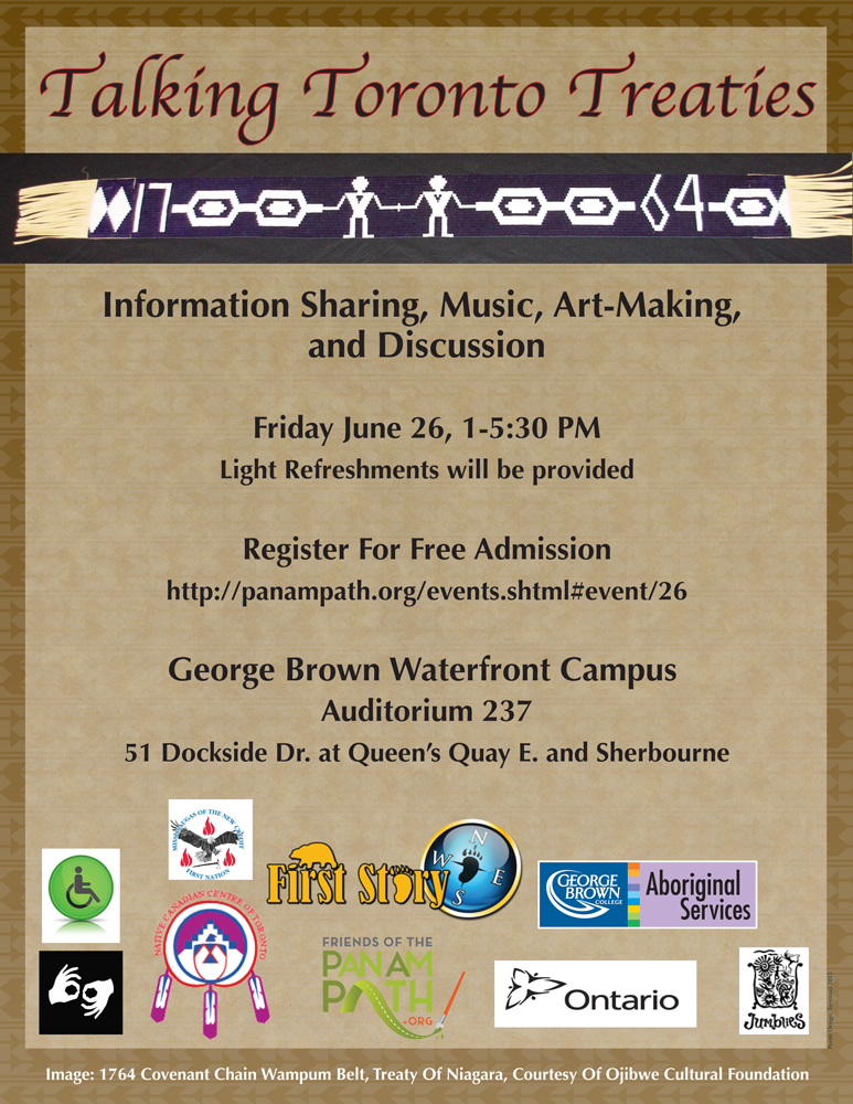 In June 2015, I was one of the coordinators of Talking Toronto Treaties, a collaboration between First Story Toronto, Jumblies Theatre, and George Brown College Aboriginal Student Services. On June 26, we hosted a major event at the Waterfront Campus of George Brown College.